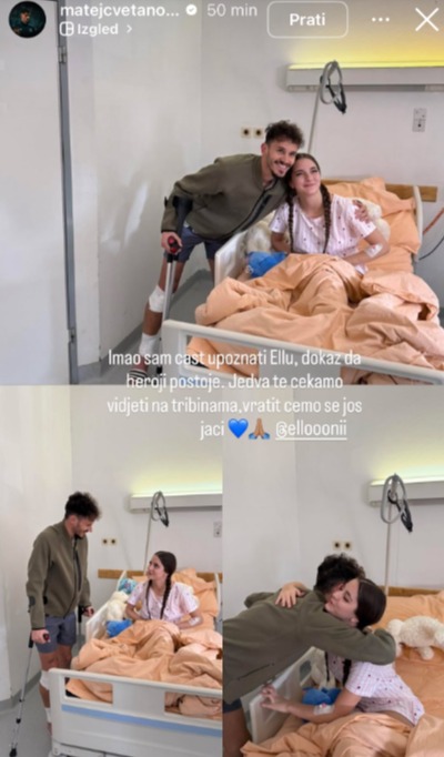“Imao sam čast upoznati Ellu, dokaz da heroji postoje. Jedva te čekamo vidjeti na tribinama, vratit ćemo se još jači”, poručio je Cvetanoski uz fotografije iz bolničke sobe.