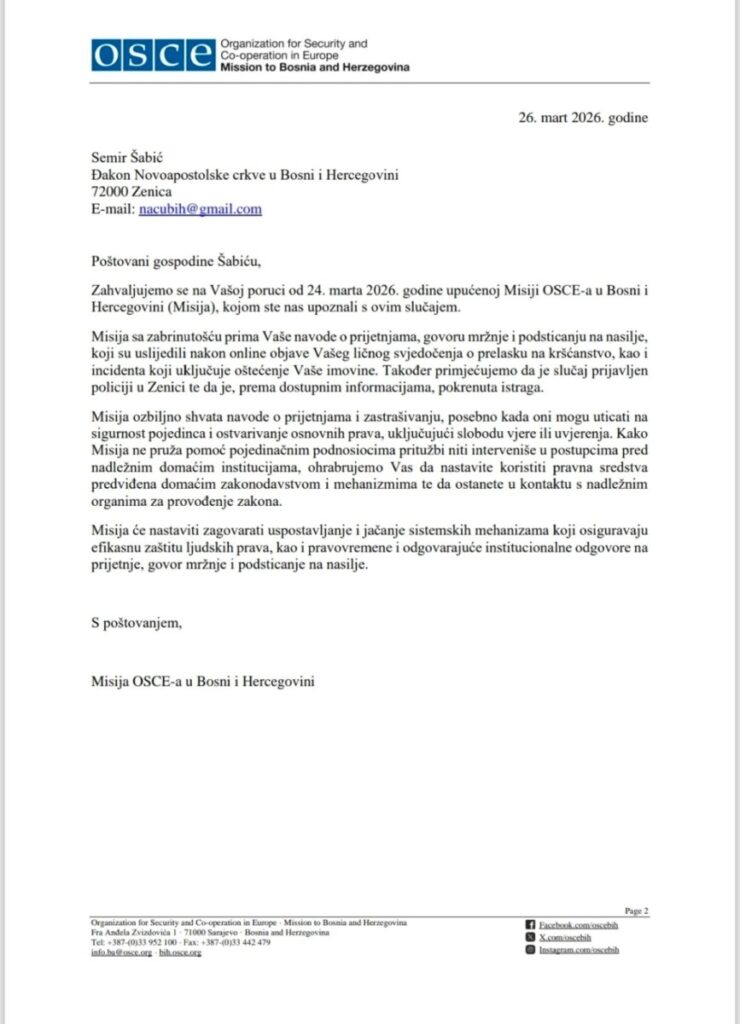 „Uzdajem se u Boga koji vidi svaku nepravdu i poznaje svako srce. Njegova ljubav je jača od svake prijetnje“, zaključio je Šabić.