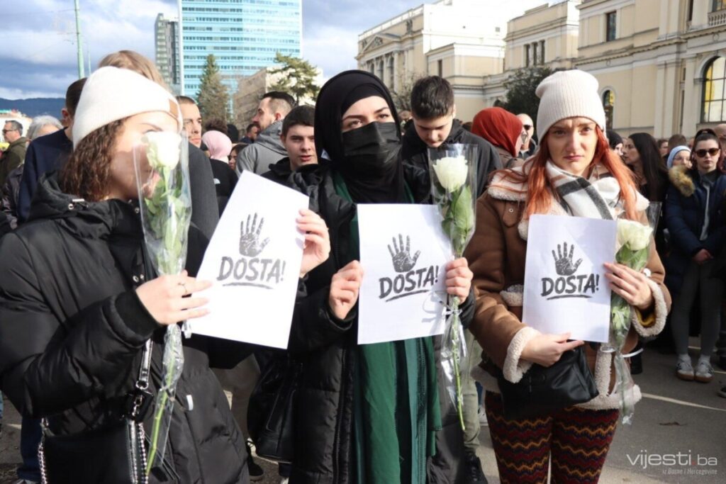 Okupljanje je počelo ispred Zemaljski muzej Bosne i Hercegovine, gdje su građani nosili transparente s porukama poput: „Ako nas sve poubijate, od koga ćete krasti?“, „Da li je potrebno da idemo u školu u strahu“ i „Sarajevo plače, ali više ne šuti“. Skandiralo se „Izađite“ i „Hoćemo pravdu“, uz zahtjeve za odgovornost nadležnih institucija.
