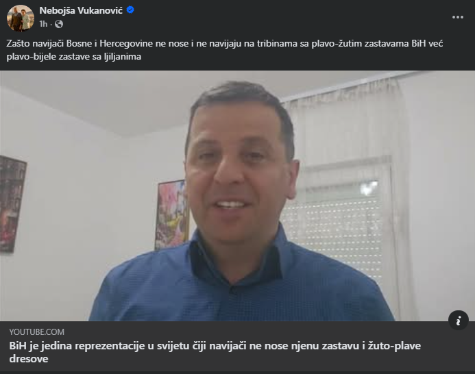 Njegove izjave dolaze u trenutku kada reprezentaciju Bosne i Hercegovine očekuje jedan od najvažnijih mečeva u novijoj historiji, dok se među navijačima ponovo otvaraju pitanja identiteta, simbola i odnosa prema državnim obilježjima.