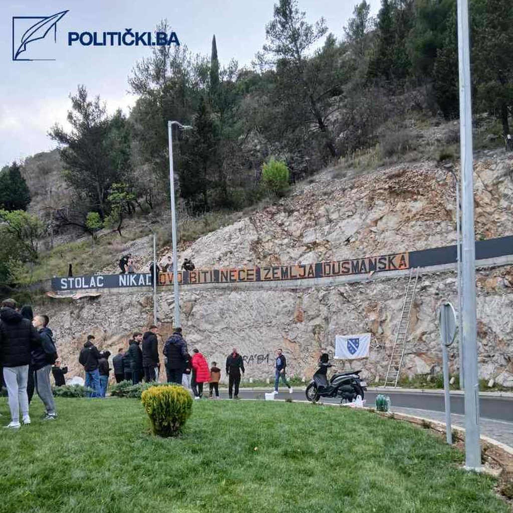 Sve je počelo jučer kada su na kružnom toku osvanuli murali kojima se veliča hrvatska ideologija. Tokom njihovog iscrtavanja saobraćaj je bio blokiran, a korištene su i baklje.