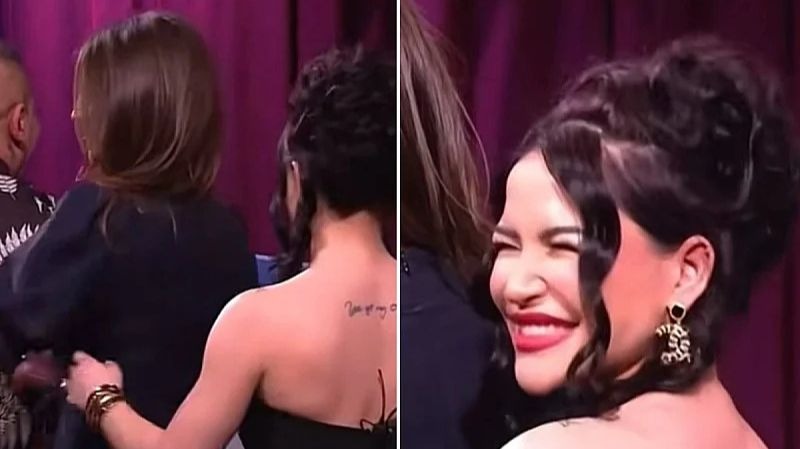 U nastavku snimka vidi se kako Aleksandra i dalje brzo crta po Džejlinim leđima, a zatim se okreće prema kameri i smije.